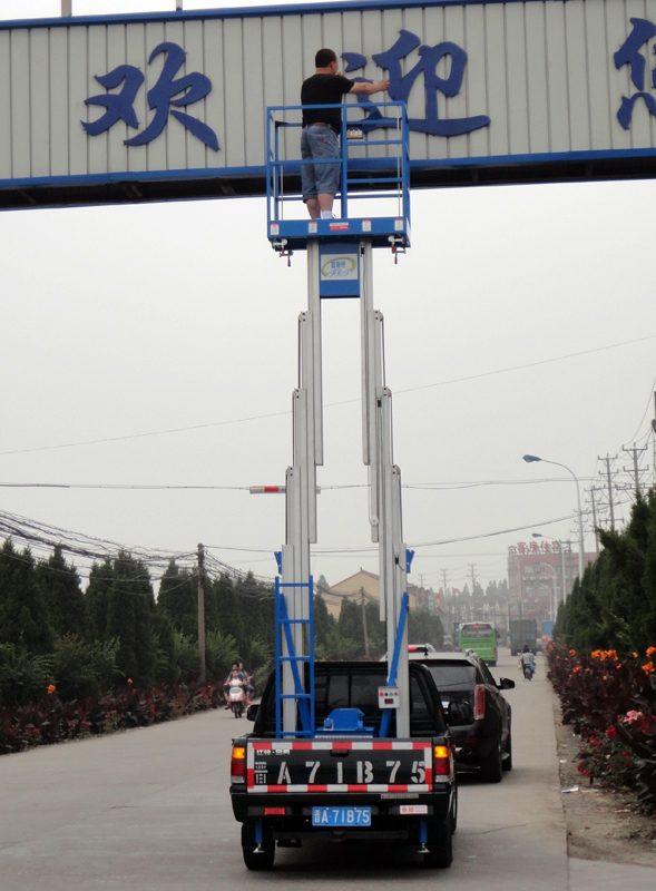 汽車升降機根據舉升機構的可分為剪叉式汽車升降機、鋁合金汽車升降機、曲臂式汽車升降機。剪叉式汽車升降機是集四輪移動與二輪牽引式于一身,采用汽車底盤做平臺底架,利用汽車發動做動力,既可行駛又可驅動升降機。剪叉式汽車升降機以小型貨車(汽車)或電瓶車為載體,移動靈活迅速,操作簡單,作業范圍廣。車載剪叉式升降機采用剪式升降結構,剪叉結構采用優質矩形錳鋼管制作,整體強度高,載重量大,升降穩定性好,廣泛用于城建、油田、交通、市政、室外廣告等行業。