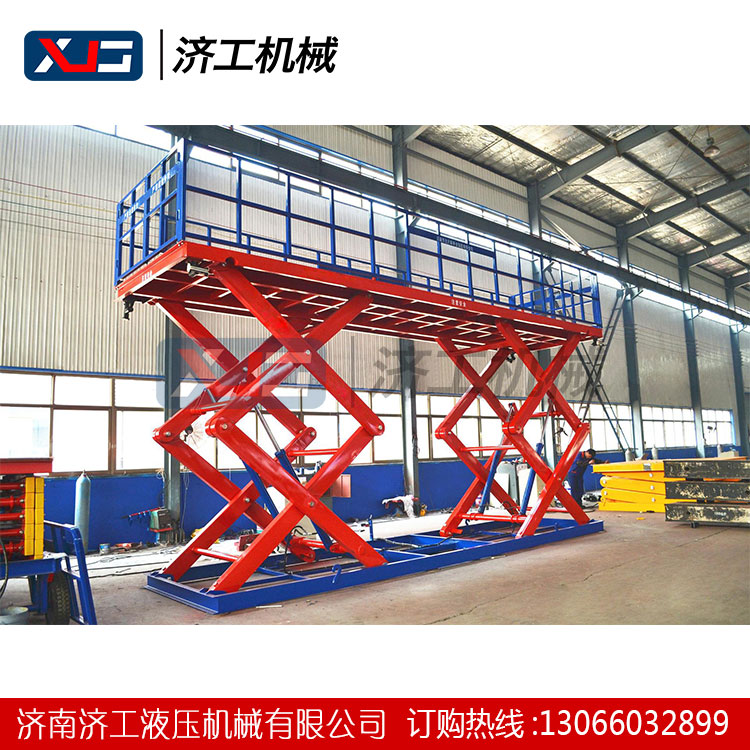 * 一般采用多級剪叉加升降軌道,載重量大,運行平穩。