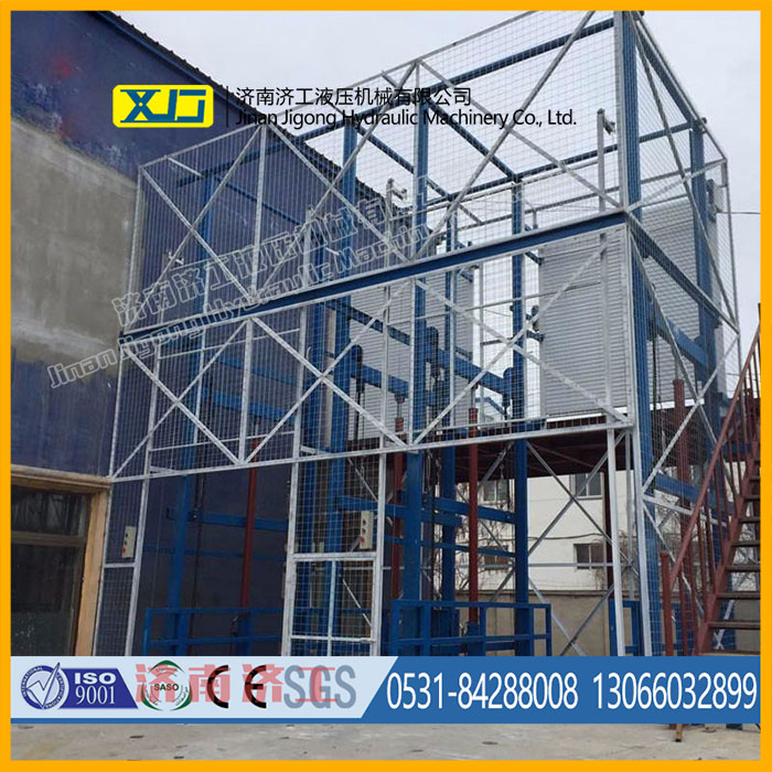 載重能力大,室外貨梯簡易電梯是靠液壓千斤頂?shù)脑韥眄斏I廂的,可采用多個(gè)油缸同時(shí)作用提升載重的轎廂。 噪聲低,液壓系統(tǒng)可遠(yuǎn)離井道設(shè)置,隔離了噪聲源。